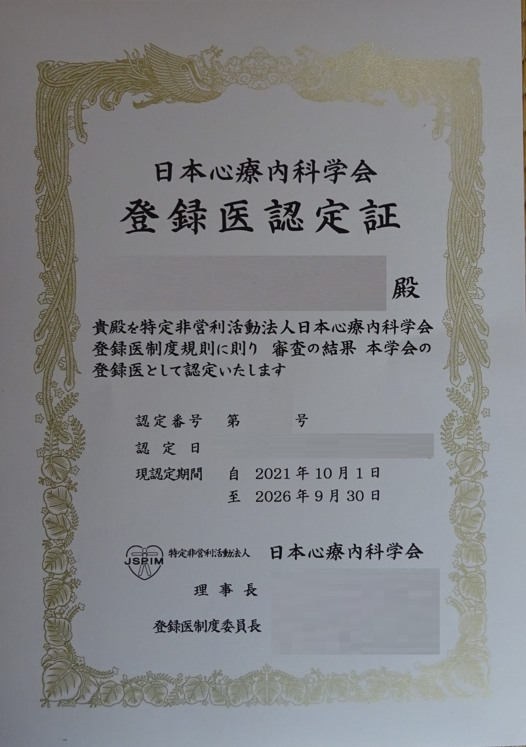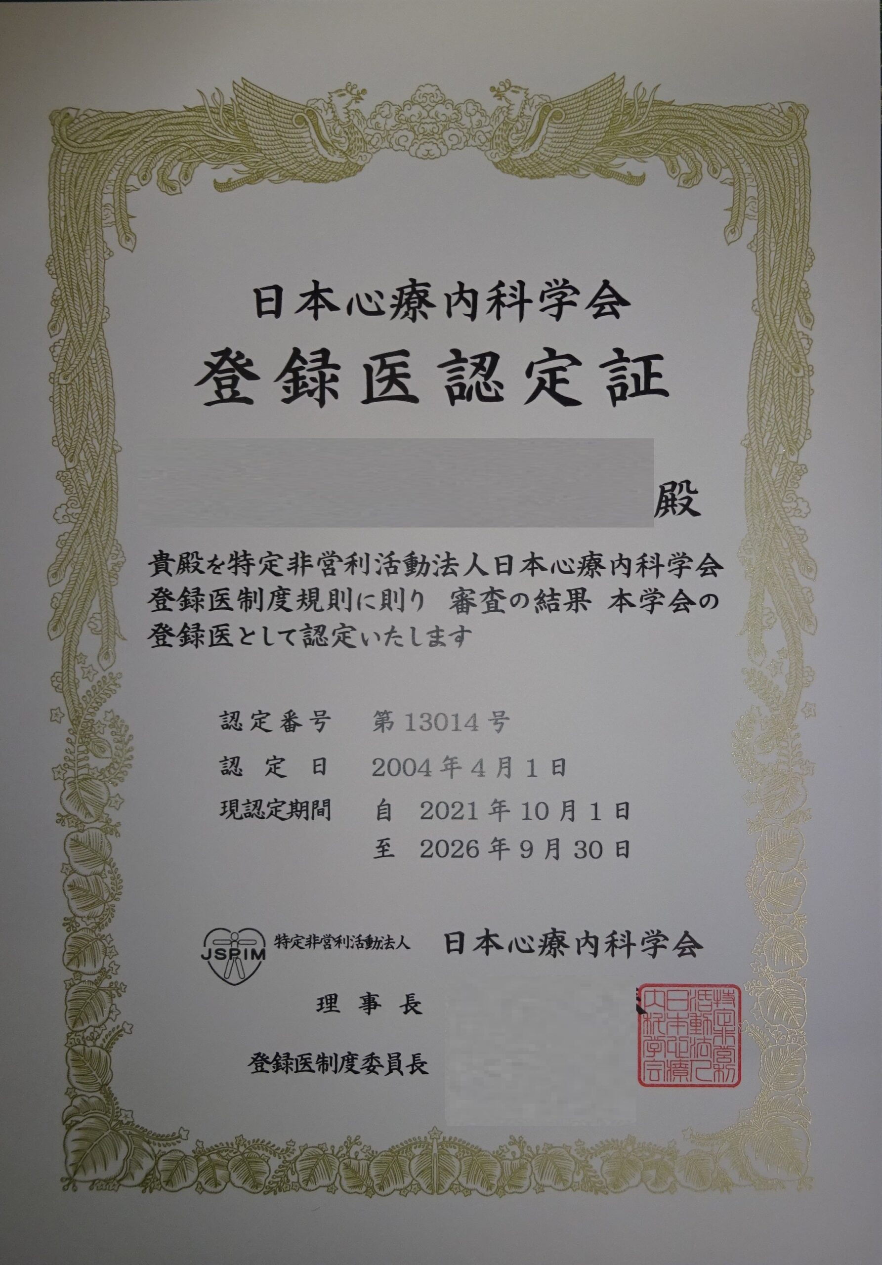 『(前略)過日、誠に有り難いことに、日本心療内科学会登録医の認定証が届きました。すなわち、平成16年から 同 学会の登録医を継続しています。 ちな みに、5年ごとに 更新審査があります。