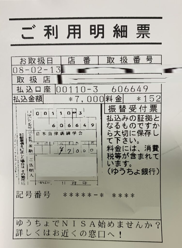 ならびに、本日は、上記の 日本自律訓練学会の年会費請求が 来ました。それで、本日、早速 入金致しました。因みに、正会員で ¥7,000円(ゆうちょ銀行での支払)であります。なお、ゆうちょ銀行の口座を持っていて 通帳を用いて 支払を行ないますので、振込手数料は ¥152円であります。序で乍ら、その振込を行なう為に、郵便局内のA.T.M.を用いました。なお、女性郵便局員が 二人 居ました。それで、『いらっしゃいます。』とのことでありました。(後略)」と記させて頂きました。