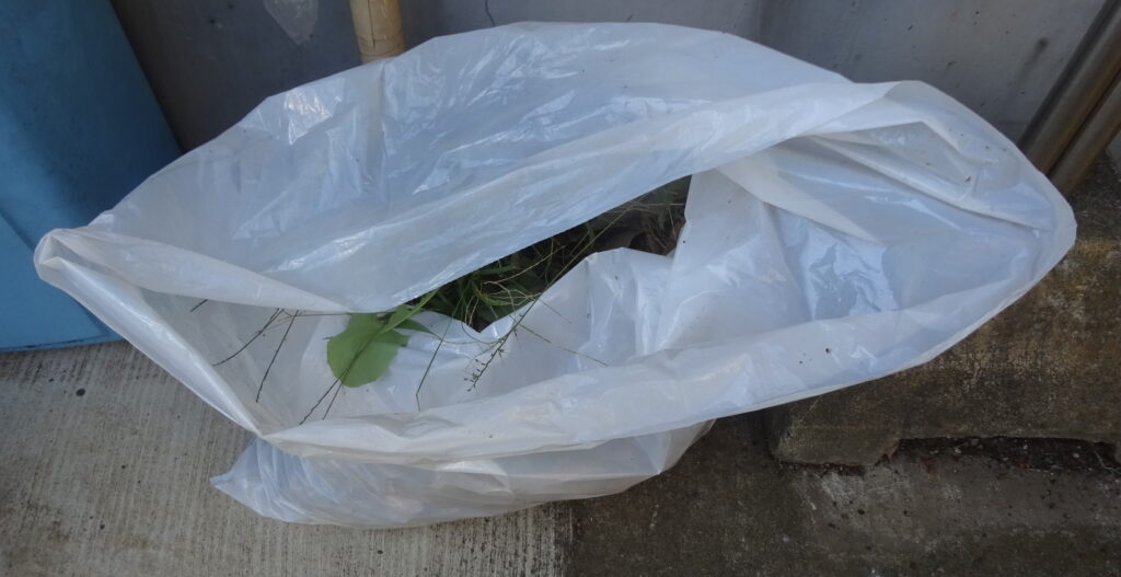 しかして、上記のように グリホサート除草剤を散布いたしましたが、1週間で れました。ちなみに、家政婦さんによりましても れたとのことでありました。それで、れた 雑草を処分することになりました。なお、プラスチック グローブ(手袋)などを用意しました。