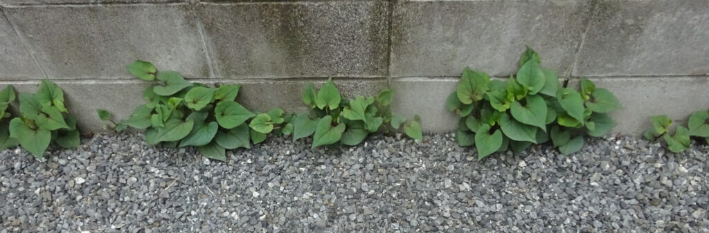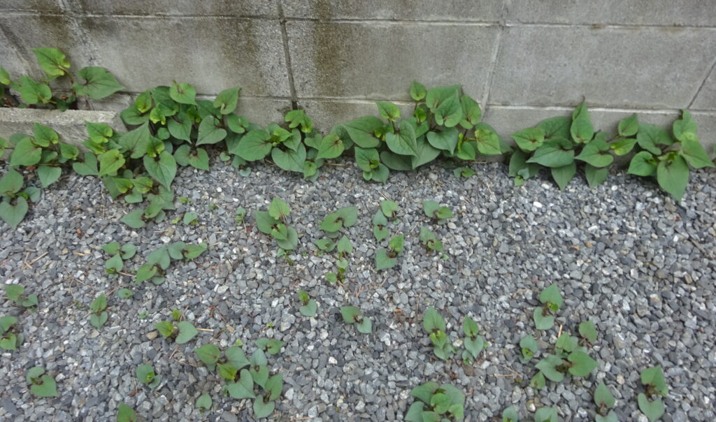 上記のドクダミに グリホサート除草剤を散布した状態(当家の敷地内)
