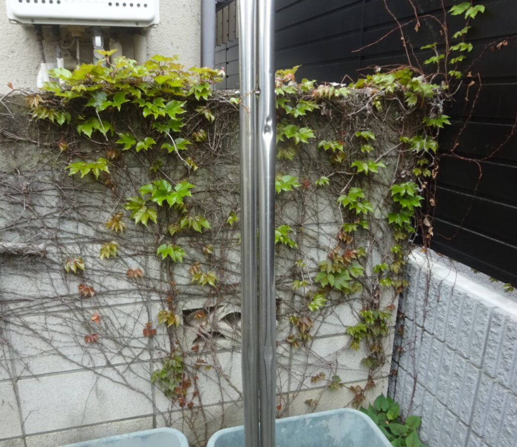 (後略)」と記させて頂きました。すなわち、今回 上記のように、グリホサート除草剤を使用しました。つまり、そのグリホサート除草剤 40㎖を 25倍 すなわち 1ℓの水に 溶かして用いることにしました。因みに、前日に 試して、使える状態でありました。なお、家政婦さんには、歩道から 敷地内に向かって 通常通りに 噴霧すれば、本日は 南向きの わずかな風でありますので 風上から 噴霧することになり 大丈夫であると伝えました。序で乍ら、先々々週 と 先々週は 南風が強くて また 先々週は 論外の北風が強かったので、3回 延期しました。因みに、 3週間で 枯れるとされていることを伝えました。なお、前述いたしました 庭師の意見により、除草剤の原液を 刷毛を使って 当方が 蔦 と ドクダミの葉に塗りました。序で乍ら、蔦は 高いところに 葉を付けるので、下の画像の 脚立を用いました。