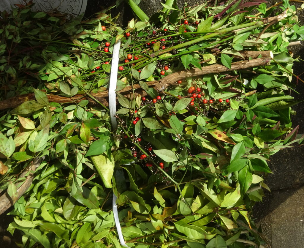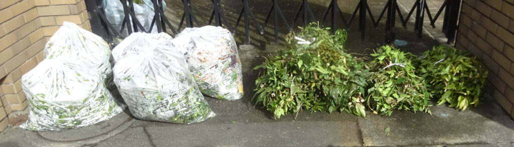 剪定された 木々(袋に入れて 5袋 そして 樹々は 5束)