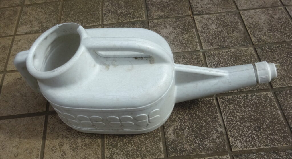 (後略)」と記させていただきました。それで、早速 上の画像の植物活力素を使いました。すなわち、上記のように 100mℓずつ 100倍に希釈して 10ℓにして 撒くか噴霧するとのことでありましたので、10ℓのバケツ、計量カップ、じょうろ、そして、霧吹きを用意しました。
