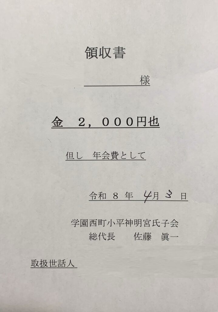 奉納金の領収書(本日 すなわち 4月3日[金]の日付が記されています)