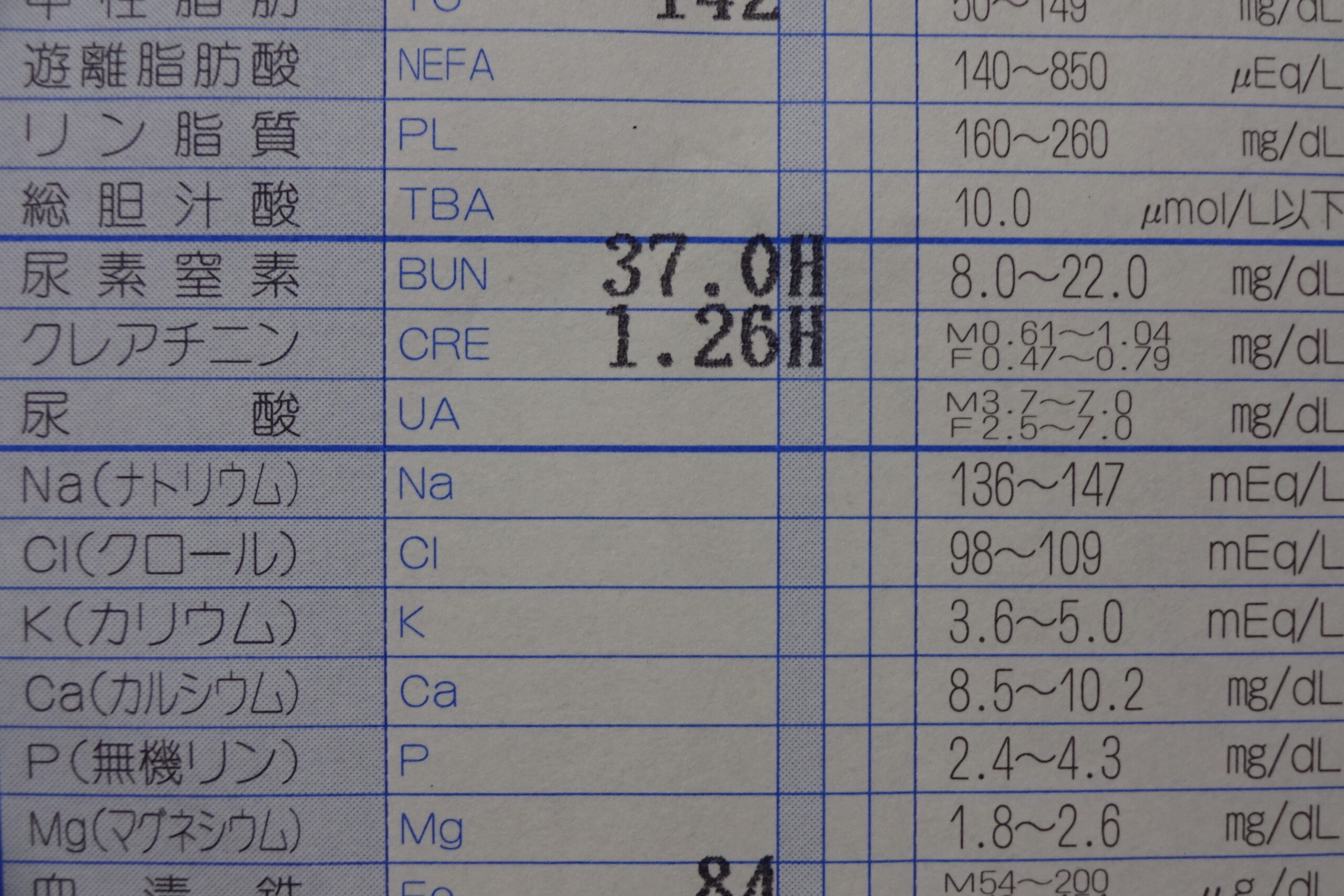 『(前略)腎機能の血液検査の結果を、下に掲載致します。