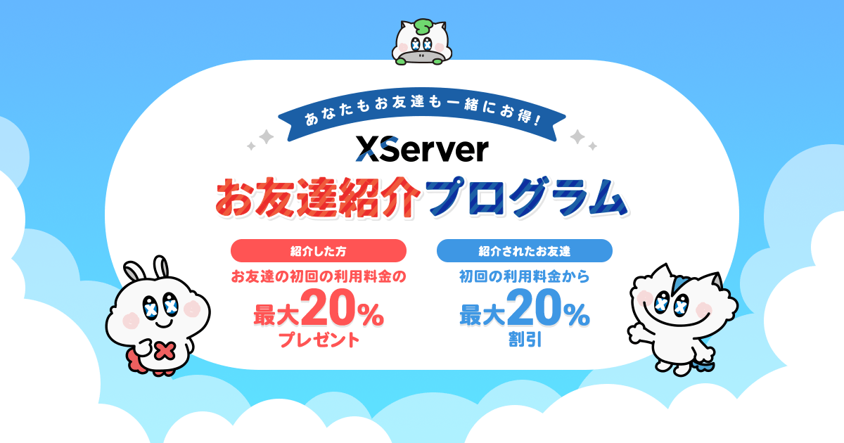 XServerアカウントをお持ちの方が、報酬対象のサービスをお友達に紹介することで、