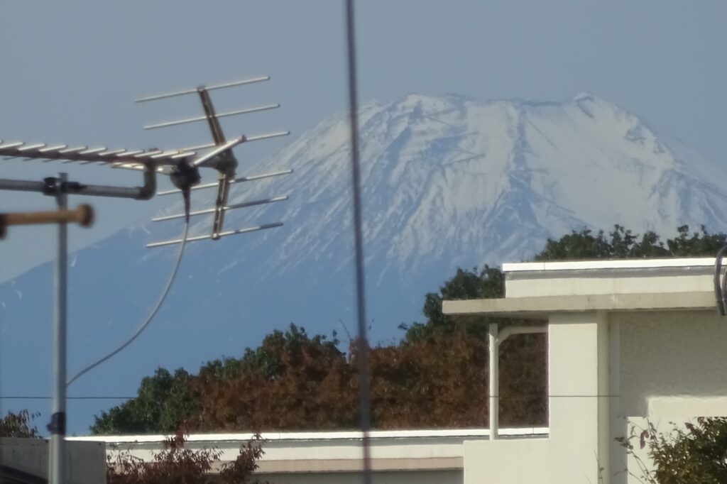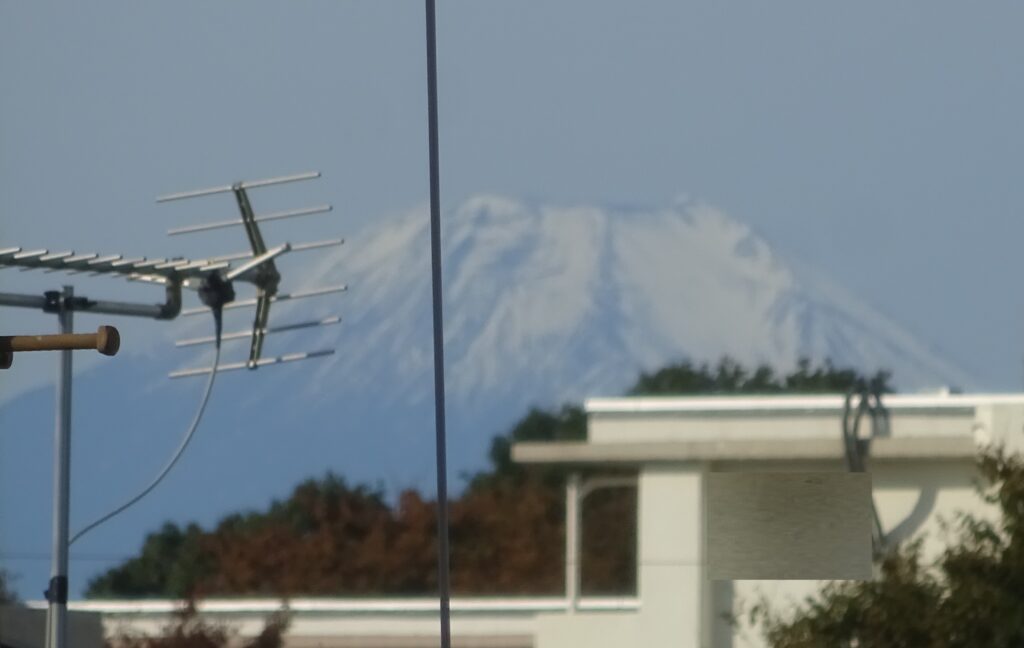 おまけに、本日 早朝、この時期には珍しく、自宅の屋上から富士山が見えました。そして、『冠雪』が見られました。因 みに、この富士山の写真の中から 抜萃 して、下に掲載致します。なお、富士山に初冠雪が観測されたのは、今年は 令和6年(2024年)11月7日であり、観測開始以来 最も 遅い記録とのことでありました。去る10月5日(木)、山梨県の甲府地方気象台は 富士山の初冠雪を発表しました。序で乍ら、平年より 3日 遅く、昨年より 5日 遅い観測とのことであります。