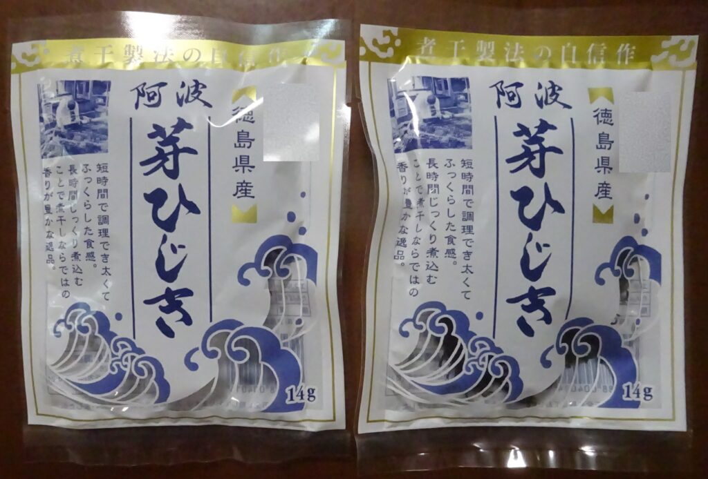 国産の 芽ひじき 2袋(家政婦さんによりますと 賞味期限は 同じとのことでありますが、当然のこと乍ら 毎回 購入する度に 賞味期限は変わっています。それで、購入すると 下に置いて 上から 使ってもらうようにしていることを伝えました)