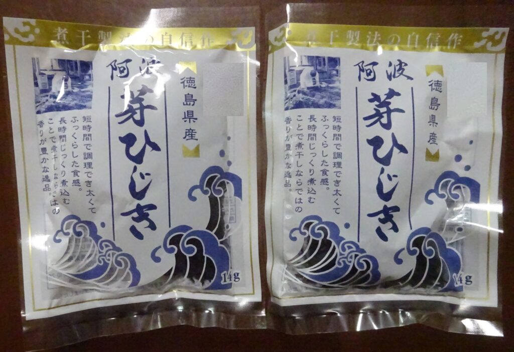 国産の 芽ひじき 2袋(家政婦さんによりますと 賞味期限は 同じとのことでありますが、当然のこと乍ら 毎回 購入する度に 賞味期限は変わっています。それで、購入すると 下に置いて 上から 使ってもらうようにしていることを伝えました)