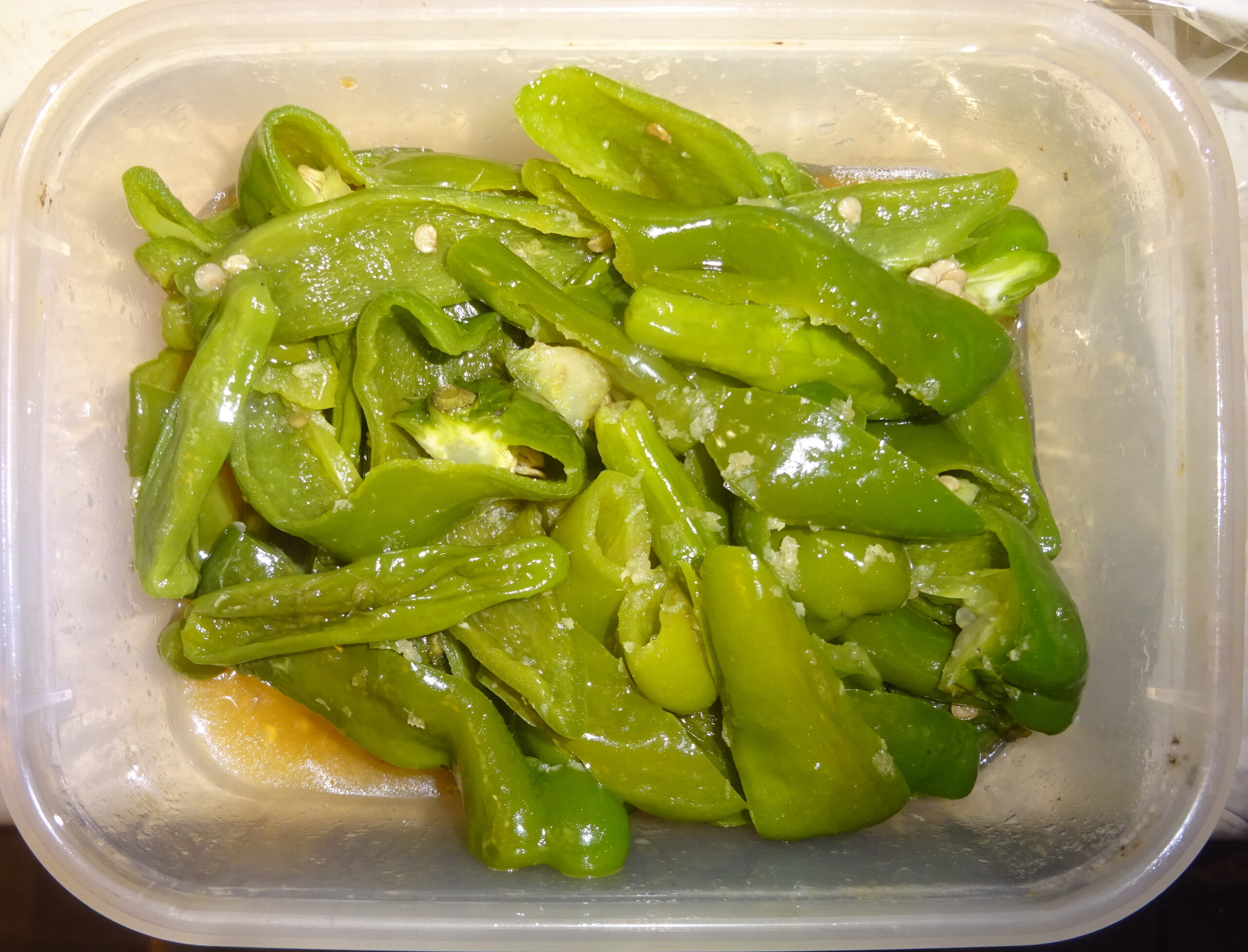 ときに、ピーマン、獅子唐 と 茄子の 生姜焼きです。因みに、ピーマンのことは、去る 10年前の6月15日(月)の「エリンギ」のブログ の中段に記させて頂きました。なお、ピーマンの種も そのまま入れております。序で乍ら、去る 10年前の6月11日(木)の「ジャガイモの芽」のブログの上段に、