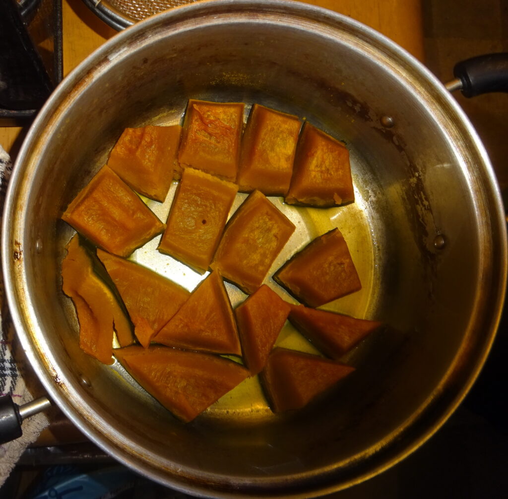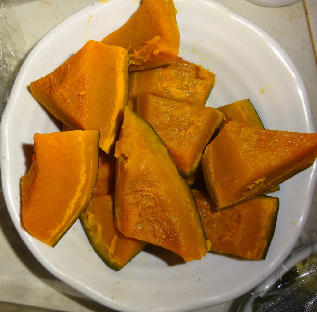 しかも、国産の 南瓜の煮物です。 因みに、南瓜のことは、去る 10年前の4月16日(木)の「酢漬け」のブログ の中段やや上に記させて頂きました。なお、この 南瓜の煮物は 父親の好物でありましたので、お供えを させて頂きました。