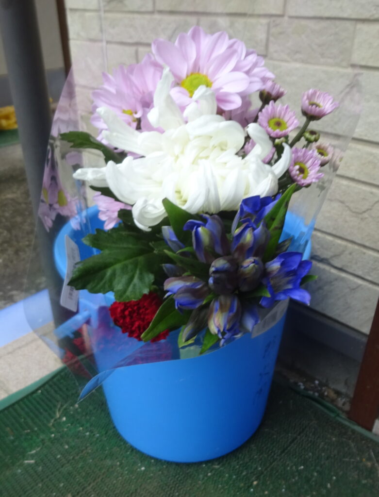 それから、今回は 店長に会いませんでした。序で乍ら、男性店員が ズボンから シャツを出していました。因みに、会計では、〖えびな(文)〗という年配女性店員 そして 〖やまもと〗という年配男性店員を含めて 2名が 居ました。なお、後者の いつもの 方の〖やまもと〗という 年配男性店員の2番の列に並びました。序で乍ら、久しぶりであることを伝えました。お豆腐 や 生姜などの 水の出る商品には、ビニール袋を被せております。ところが、会計のときには バーコードを読み取る為に そのビニール袋が邪魔になりますので、取って 持ってきた方が いいでしょうかね と しばしば 訊いています。 因みに、会計で ビニール袋を被せてもらう 手間を省略してもらう為に、予め ビニール袋を被せていることを伝えました。それで、上記のように そのビニール袋が邪魔になるのであります。しかも、以前の会計が 間違ったようには ならないように、小豆は 下の画像のように 3袋であることを話しました。そして、確認して下さいと伝えました。なお、セルフ レジの会計のときに 1万円札を 2枚 同時に入れることが出来ることを 以前 その〖はとり〗という 年配女性店員から聞かされましたので、今回 1万円札を 2枚 入れて 教えてもらった通りに行ないました。序で乍ら、セルフ レジの会計が詰まっていましたので 急ぎまして 早く 終えて 〖どうぞ。〗と伝えました。因みに、今回も 前回に引き続き、スーパー マーケットで 仏花 を購入しました。すると、上記の年配男性店員が、その仏花 の茎の根元を ビニール袋で包んでくれました。それで、花に優しいですねと伝えました。ところが、全く反応がなく、当たり前という素振でありました。確かに 例外を除いて、通常は 仏花 を購入しますと ビニール袋で包んでくれます。なお、今回は、¥13,247円を支払いました。序で乍ら、そのスーパー・マーケットへは、自転車で通っております。
