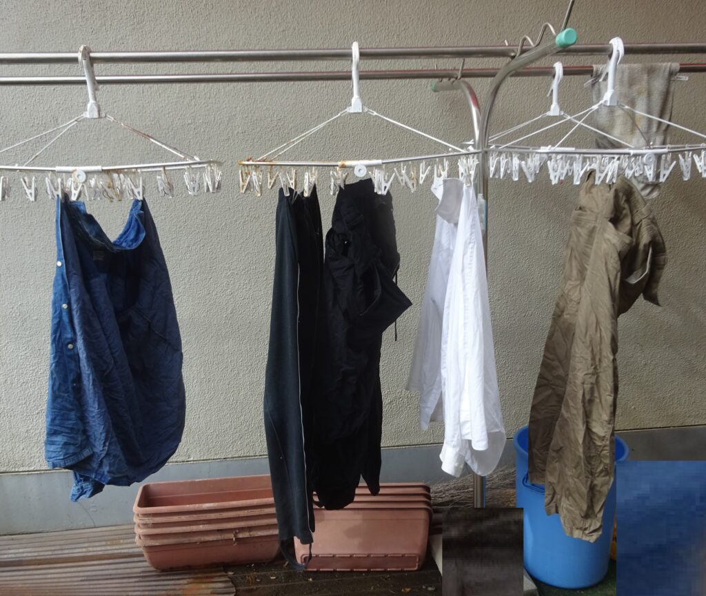 「(前略)一昨々日さきおととい すなわち の9月23日(金)の『資源回収・続報16(母親の血圧)』のブログの中段に、『家族の洗濯物のことも致しました。』と記させて頂きました。ちなみに、毎日 洗濯致しております。なお、昨日は、母親の洗濯物も致しました。(後略)」と記させて頂きました。毎日 家族の洗濯物を洗濯して しています。ついながら、雨が降りましたので、洗濯物を屋内で 陰乾かげぼしすることになりました。但し、去る 7年前の12月6日(木)の「ガス衣類乾燥機・続報・5」のブログに記させて頂きましたように、ガス衣類乾燥機を導入しました。そのため平干ひらぼし そして しの表示のある衣類を除いて ガス衣類乾燥機を用いることが出来るようになりましたので、誠に有り難いことに す量が 少なくなりました。しかしながら、ガス衣類乾燥機は、衣類に ダメージを与えることが分かりました。すなわち、衣類に 穴がいてしまうのです。ちなみに、ガス衣類乾燥機の温風 そして 回転させるときの 機械的刺激は 強いのですね。
