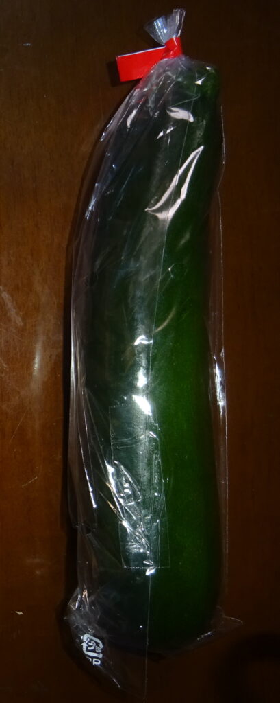 国産の ズッキー二(冷蔵庫に 立てて 保存すると いいとのことであります)