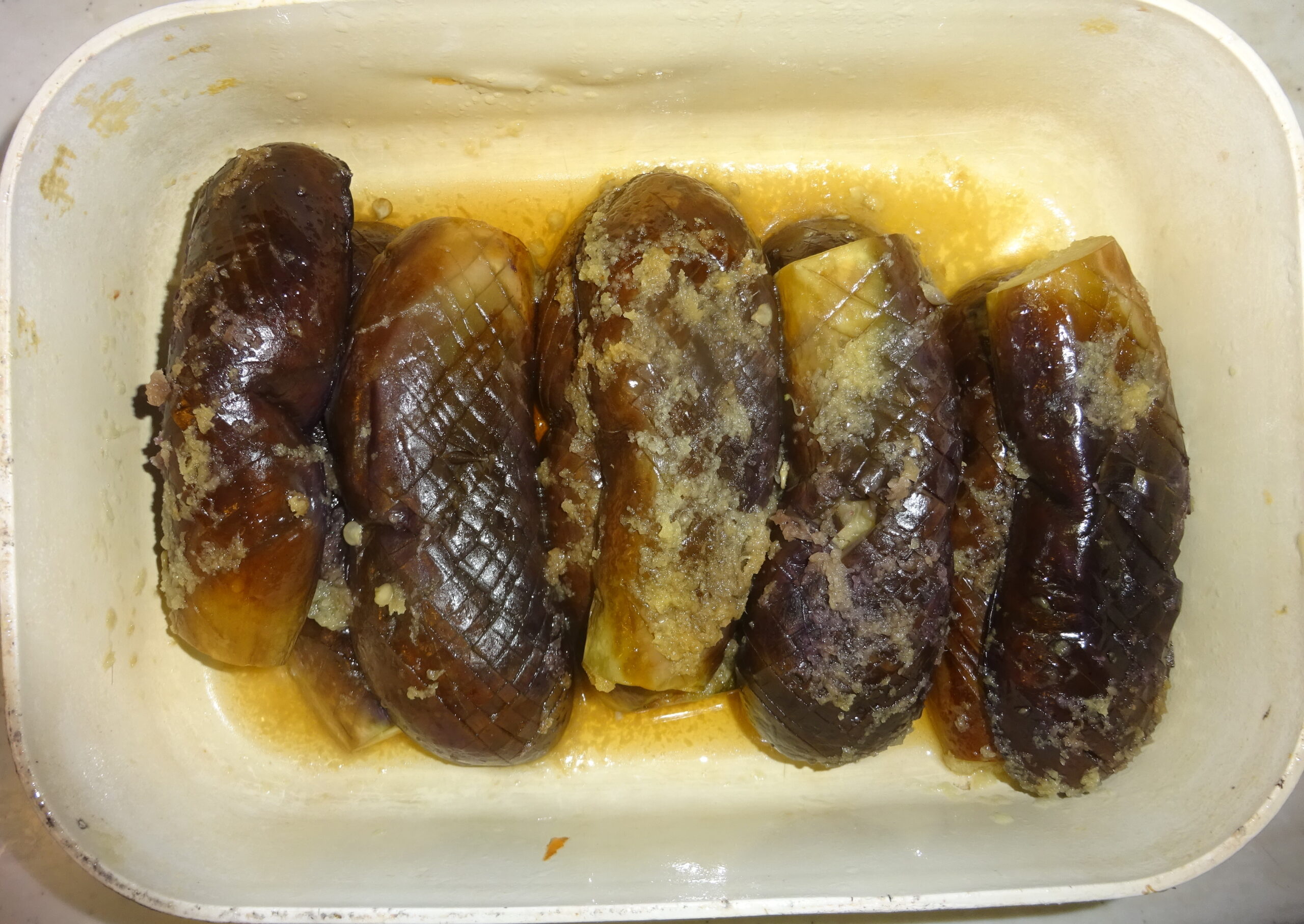 ピーマン と 茄子の 生姜焼き(茄子を 水で 蒸らして 調理したので 時間が掛かった との旨 でありました。しかも、その家政婦によりますと、茄子は 時間が掛かっても 化粧包丁を入れないと 油を吸わないので 出来ないとのことでありました。そのうえ、その家政婦によりますと、生姜を入れ過ぎて 辛くなったので、みりんを加えたとのことでありました。但し、これでは 今度は 甘くなり過ぎてしまうと思われました)