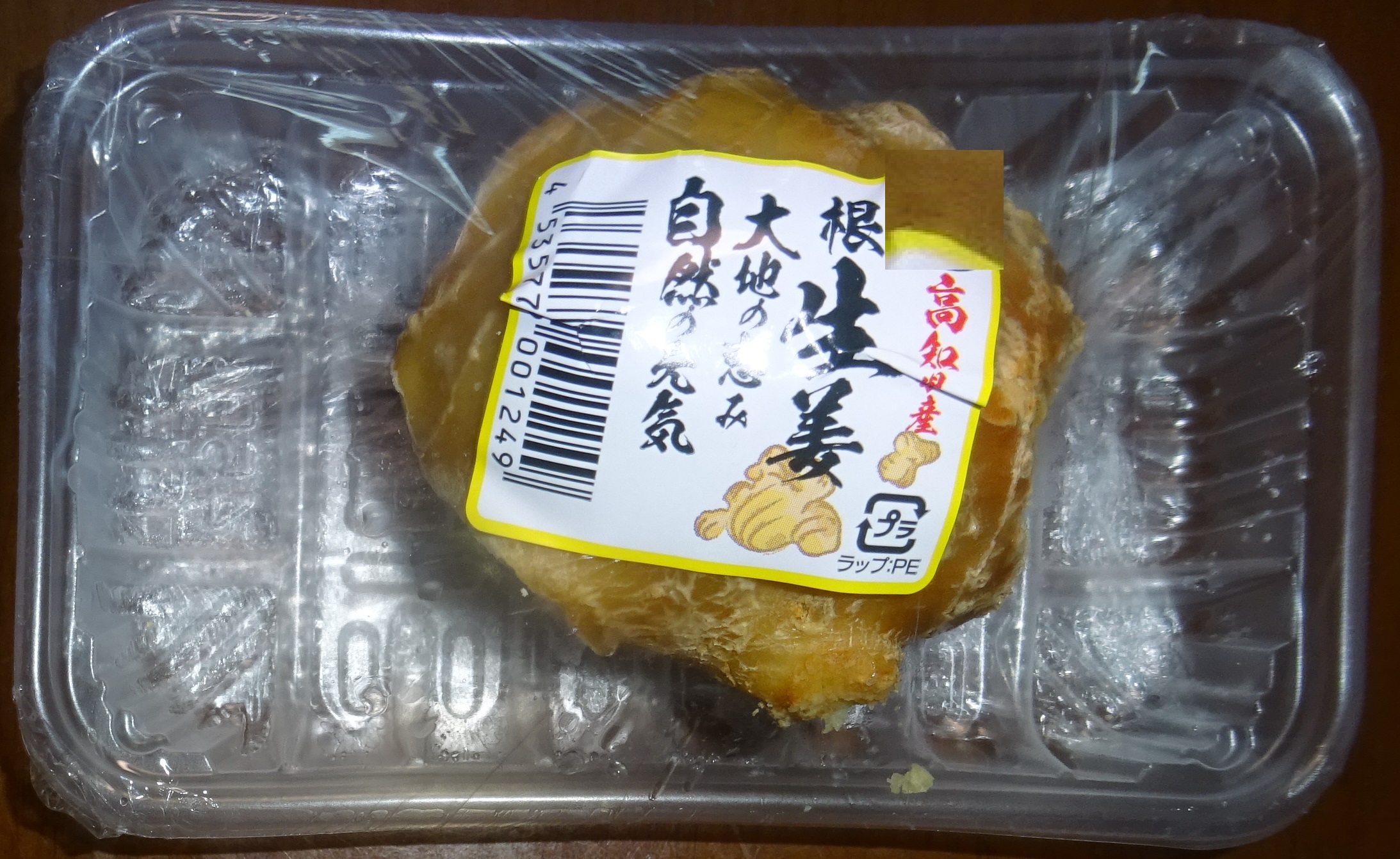 国産の 生姜(家政婦さんによりますと、生姜は 時間が経過すると 鮮烈さがなくなるとの旨 でありました。それで、すりおろして 冷凍庫で保管するようにしようとの話になりました。そこで、これ迄 は 同じ値段でも 一番小さい 国産の 生姜を選んでいましが、誠に有り難いことに、これからは 気にすることがなくなりました)