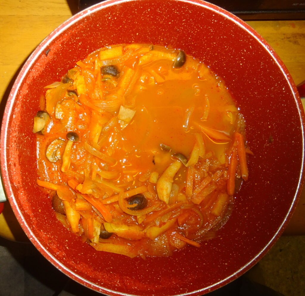 ときに、国産の 人参、トマト、玉葱、マッシュ ルーム(ブラウン)、ぶなしめじ、ズッキーニ、パプリカ そして 国産の 馬鈴薯のトマト煮です。因みに、去る 9年前の7月13日(月)の「トマト煮(昨日のおかず)」のブログの中段やや下に、