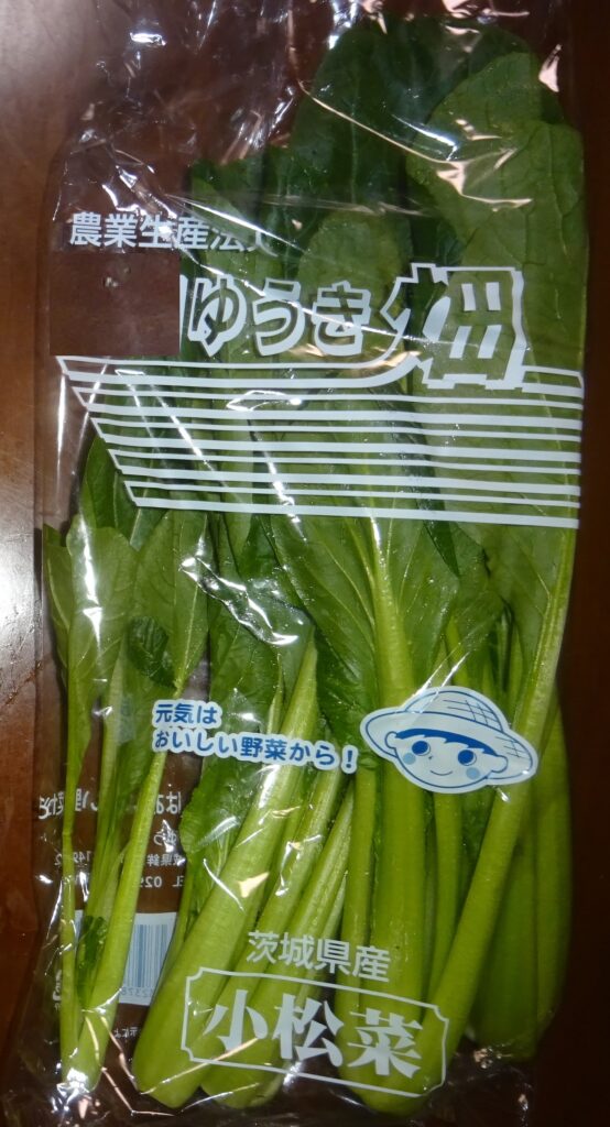 なお、下の画像の小松菜が 真空予冷されていることを伝えました。すなわち、近年 真空予冷が、主流で行われています。つまり、真空にして 野菜の水分を蒸発させ その気化熱を野菜から 奪うことにより、野菜を冷やすのであります。要するに、野菜から 奪う水分は、全体の2%であるとされております。但し、余分な水分であればいいですが、野菜の水分を奪い 乾燥させていいものであるか との話になりました。序で乍ら、家政婦さんによりますと、小松菜の調理を するのに 時間が掛かる との旨でありました。因みに、その家政婦さんによりますと、追加で 30分 煮ても 柔らかくならないとのことでありました。但し、これは、夏季の小松菜の話であります。なお、去る 昨年の12月5日(木)の「家政婦さんの入院・続報152」のブログの中段やや下に、