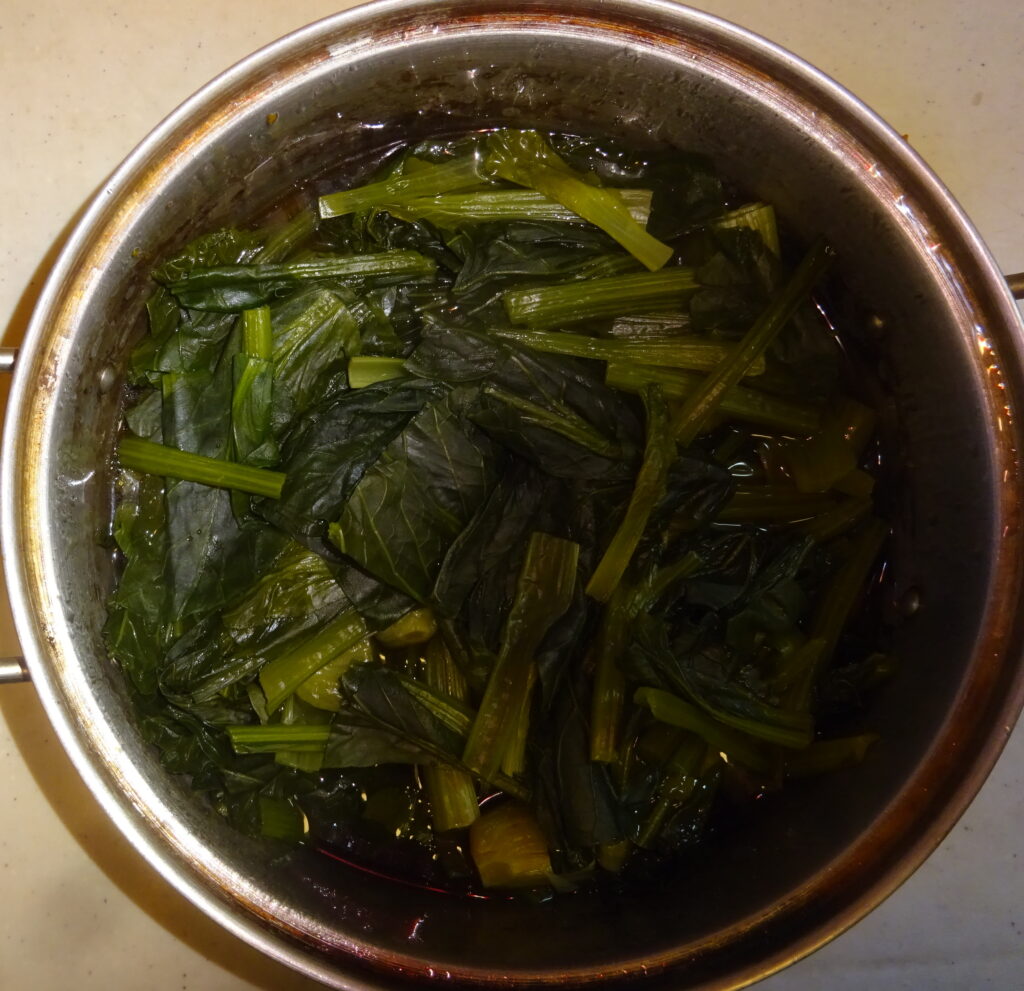 「(前略)小松菜には 鉄分(元素記号:Fe)が 含まれていますので、血中の hemoglobinが 少なめである 父親に好ましいです。序で乍ら、当方は そうは思わないのですが、家政婦によりますと、小松菜は 癖があるとのことでした。但し、この家政婦には、ホウレンソウではなくて 小松菜と伝えてあります。しかも、この家政婦が煮た 小松菜が硬かったです。 因みに、この小松菜は 父親も食べるのです。なお、旬ではないので、小松菜の煮浸しを 上記の4月6日(水)から中断していました。しかし乍ら、霜が 2回 降りる頃が 小松菜の旬とのことでありますので、今期も 小松菜の煮浸しを始めました。なお、前回 家政婦によりますと、小松菜を焦がしたとのことでした。序で乍ら、この家政婦によりますと、誠に有り難いことに 旬の小松菜は 美味しい とのことでした。なお、去る 8年前の10月16日(木)の『身土不二』のブログの中段に、