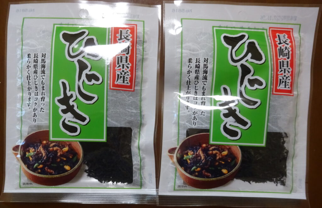 国産の 芽ひじき 2袋(家政婦さんによりますと 賞味期限は 同じとのことでありますが、当然のこと乍ら 毎回 購入する度に 賞味期限は変わっています。それで、購入すると 下に置いて 上から 使ってもらうようにしていることを伝えました)