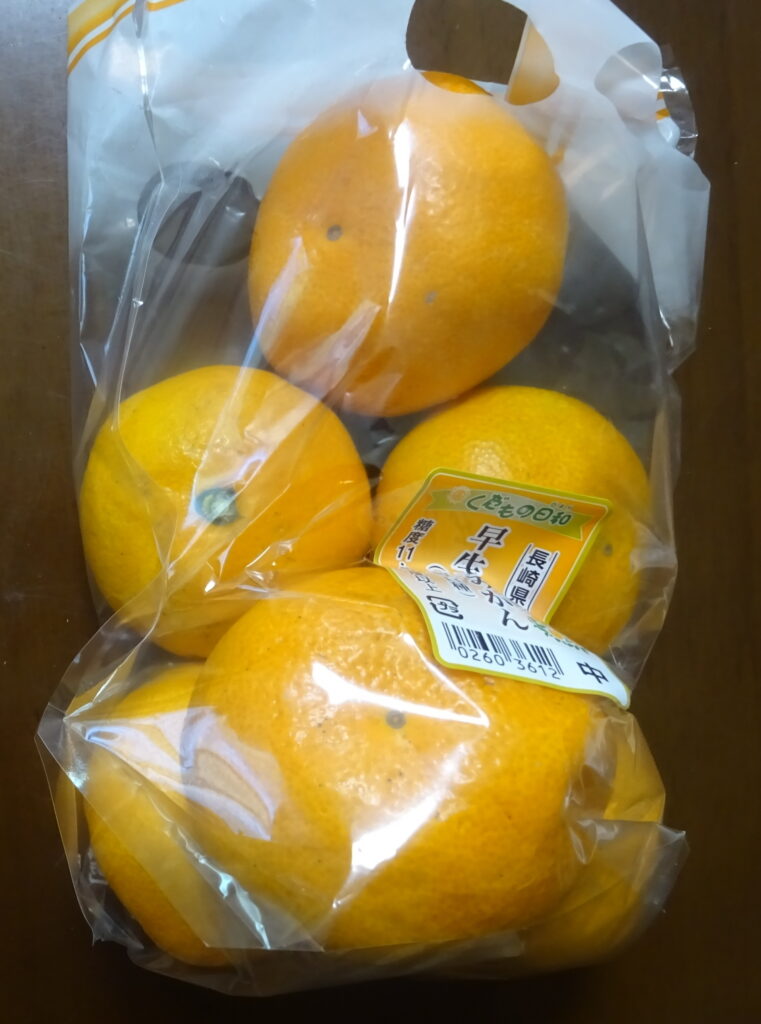 そして、母親は、緑色の服を着ていました。因みに、 蜜柑は、段々畑に生っていました。なお、母親が、その段々畑で 足を滑らせてしまいました。誠に有り難いことに 大事には 至らなかったのでありますが、この光景が 今日迄 ときどき思い出されます。(後略)」と記させて頂きました。今回も 購入したのは 静岡県産の 蜜柑でありましたので、誠に有り難いことに、上記の母親のことを思い出しました。
