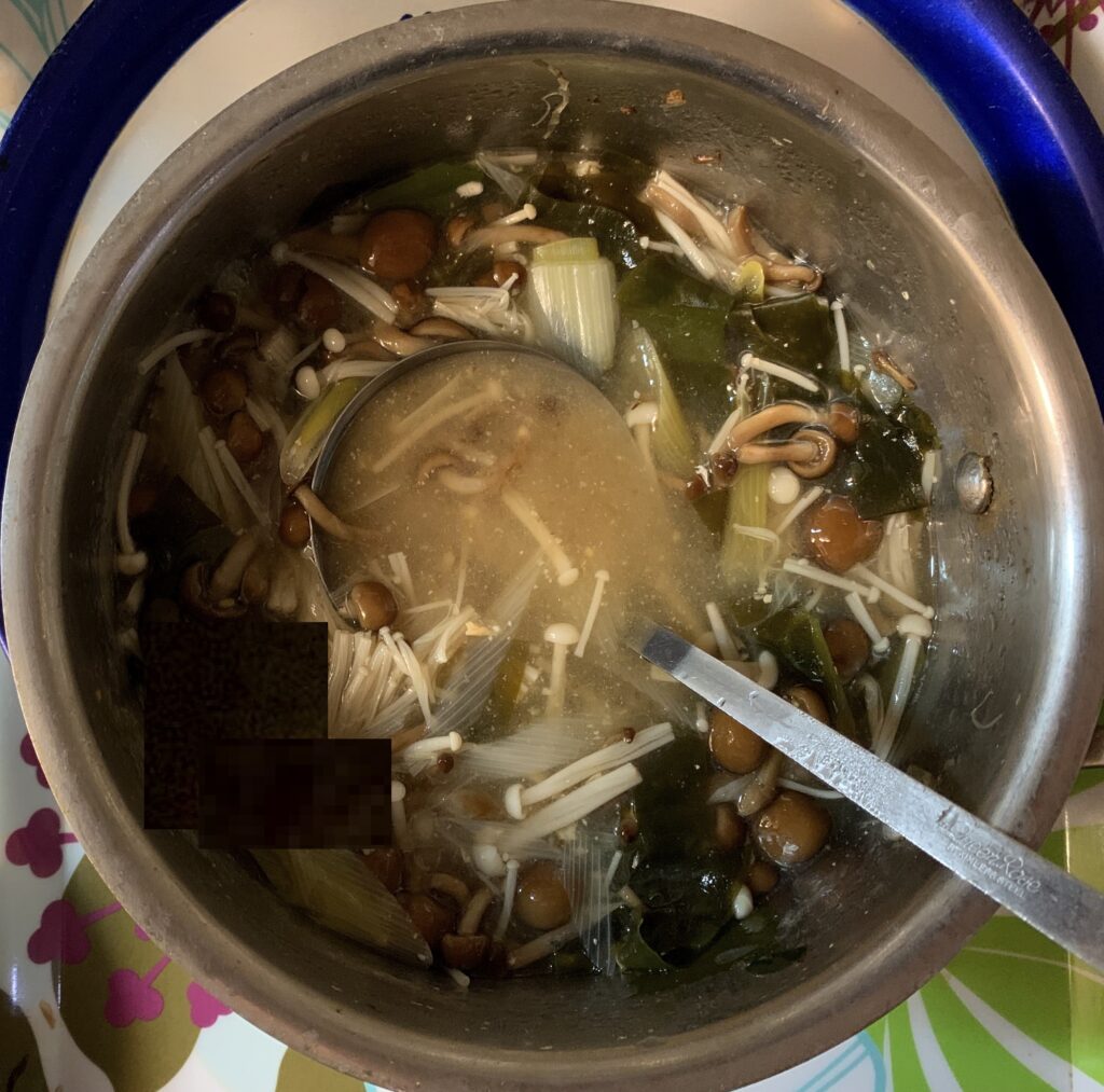 ときに、国産の わかめ、国産の ねぎ、国産の ぶなしめじ、国産の なめこ そして 国産の 榎茸 エノキタケ の味噌汁です。 ちな みに、去る 10年前の3月22日(日)の「わかめ」のブログ の中段に、