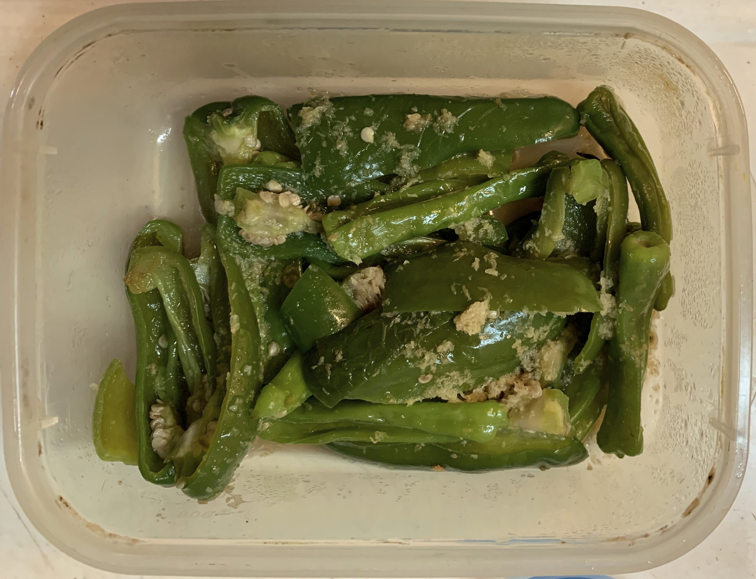 国産の 獅子唐(獅子唐は 辛くないと話しましたら、誠に有り難いことに、その家政婦さんは同意してくれました。しかし乍ら、青唐辛子は 辛いとのことでありました。そして、続いて その家政婦さんによりますと、獅子唐は苦いとのことでありました。そこで、ピーマンと同様だねと伝えました。因みに、もしかしたら 獅子唐 と ピーマンを一緒に調理しているので、苦いと思われるかもしれないと伝えました)