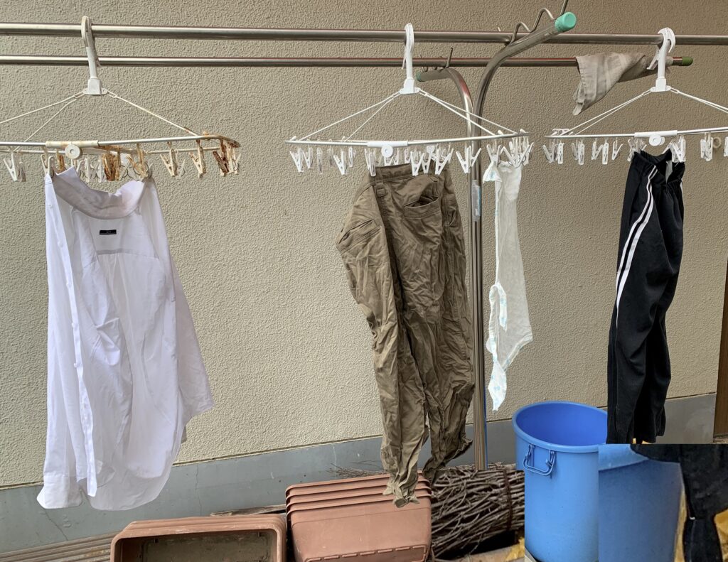 「(前略)一昨々日さきおととい すなわち 9月23日(金)の『資源回収・続報16(母親の血圧)』のブログの中段に、『家族の洗濯物のことも致しました。』と記させて頂きました。 ちな みに、毎日 洗濯致しております。なお、昨日は、母親の洗濯物も致しました。(後略)」と記させて頂きました。毎日 家族の洗濯物を洗濯して しています。ついながら、雨が降りましたので、洗濯物を屋内で 陰乾かげぼしすることになりました。但し、去る 7年前の12月6日(木)の「ガス衣類乾燥機・続報・5」のブログに記させて頂きましたように、ガス衣類乾燥機を導入しました。そのため平干ひらぼし そして しの表示のある衣類を除いて ガス衣類乾燥機を用いることが出来るようになりましたので、誠に有り難いことに す量が 少なくなりました。しかしながら、ガス衣類乾燥機は、衣類に ダメージを与えることが分かりました。すなわち、衣類に 穴がいてしまうのです。 ちな みに、ガス衣類乾燥機の温風 そして 回転させるときの 機械的刺激は 強いのですね。