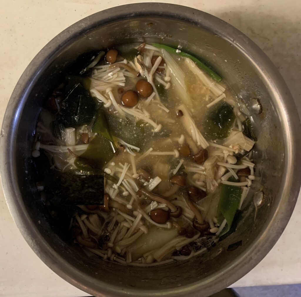 ときに、国産の わかめ、国産の ねぎ、国産の ぶなしめじ、国産の なめこ そして 国産の 榎茸 エノキタケ の味噌汁です。 ちな みに、去る 11年前の3月22日(日)の「わかめ」のブログ の中段に、