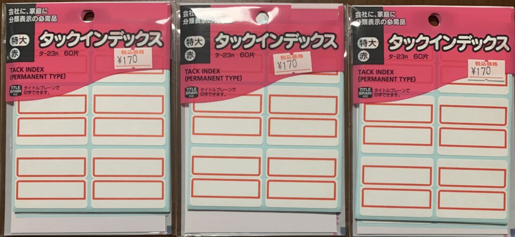 タッグ インデックス 3袋(ここでも、料金が値上がりしています。ちなみに、去る 一昨年おととしの8月12日(金)の「菜食のおかず・131(買い物)」のブログの上段に、