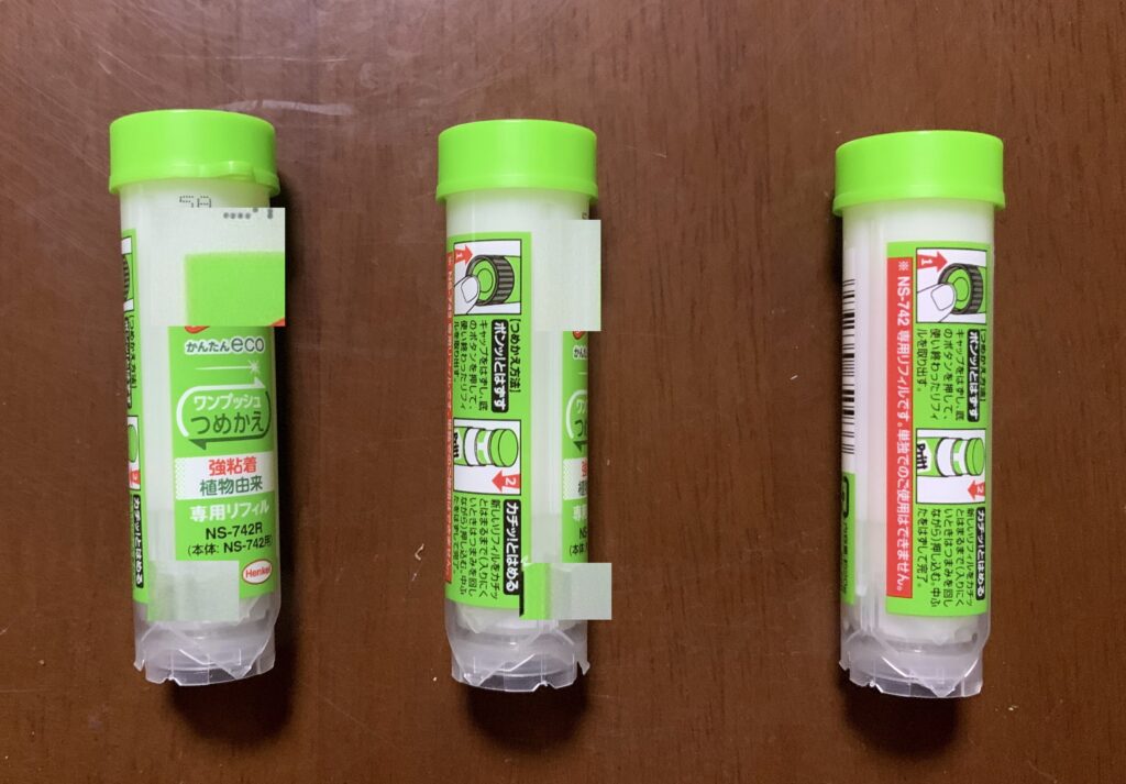 環境に配慮した のりえ 3個(1個 ¥242円[税抜ぜいぬき]もします。ちなみに、4個 購入しようと思いましたが、店頭に 3個しかありませんでした。それで、3個 全部 購入してしまったことを伝えました。何故なぜならば、在庫切れであることを知らせるためであります)