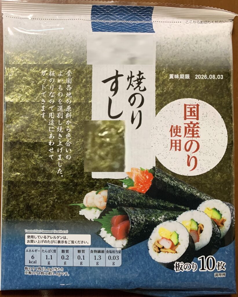 国産の 焼き海苔のり