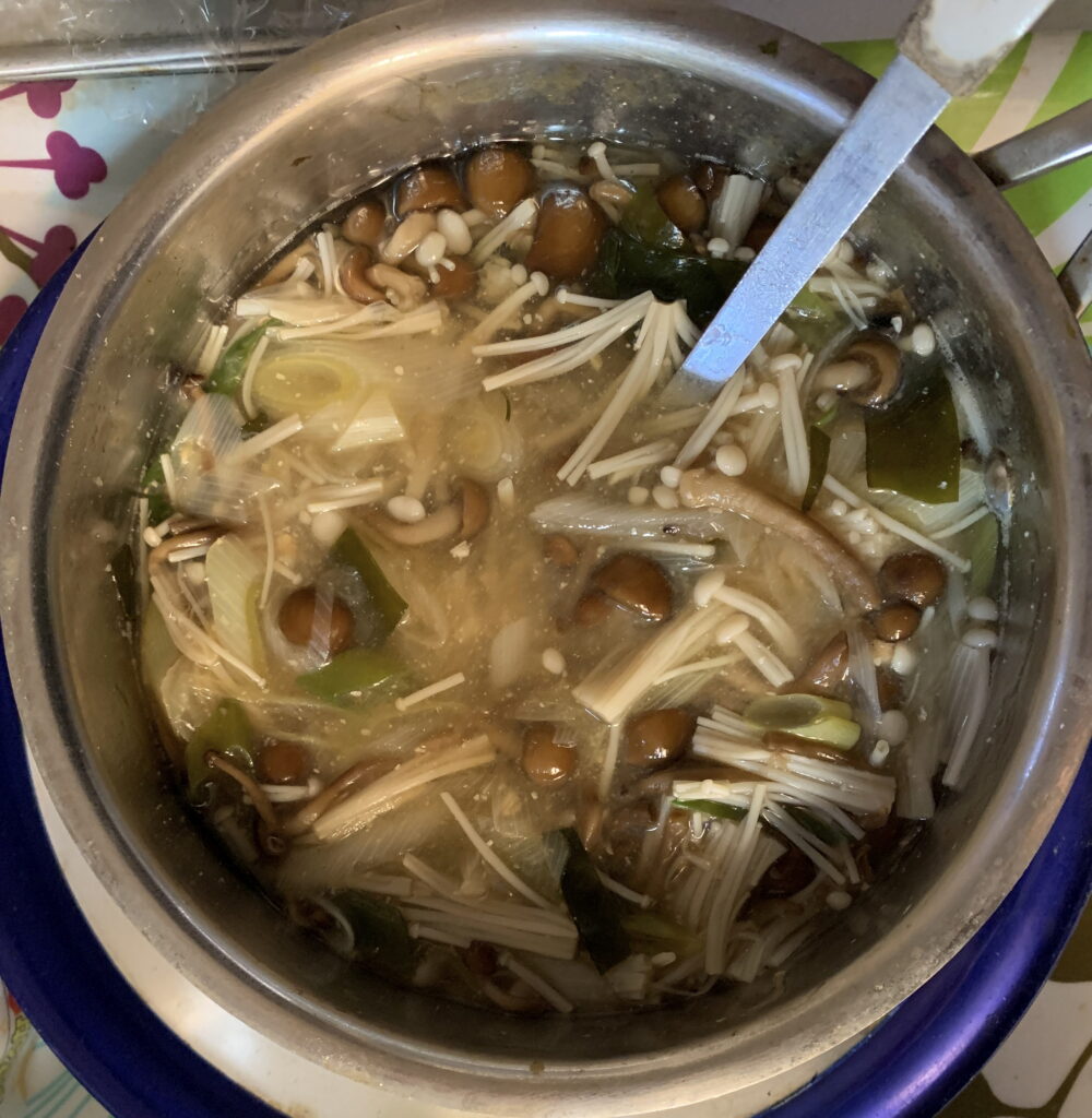 それから、 榎茸 エノキタケ の効用とこれに含まれています 「きのこキトサン(英語:mushroom chitosan)」のことにつきましては、去る 11年前の10月15日(木)の「仏花 ぶっか 」のブログ の中段やや下に記させて頂きました。くわうるに、この 榎茸 エノキタケ の調理をする際、 榎茸 エノキタケ の栄養素を逃さない ため に 心 ける 二つ ふたつ のポイント(英語:point)につきましては、去る 11年前の12月5日(土)の「霊峰・富士・8( さかき  と  仏花 ぶっか )」のブログ の下段に記させて頂きました。ちな みに、味噌汁の具としては 榎茸 エノキタケ は いい とされていることを 家政婦さんに伝えました。