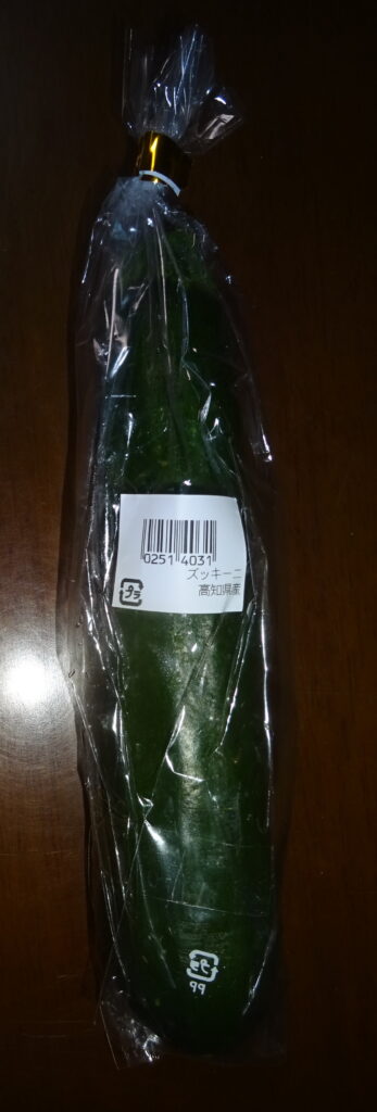 国産の ズッキー二(冷蔵庫に 立てて 保存すると いいとのことであります)