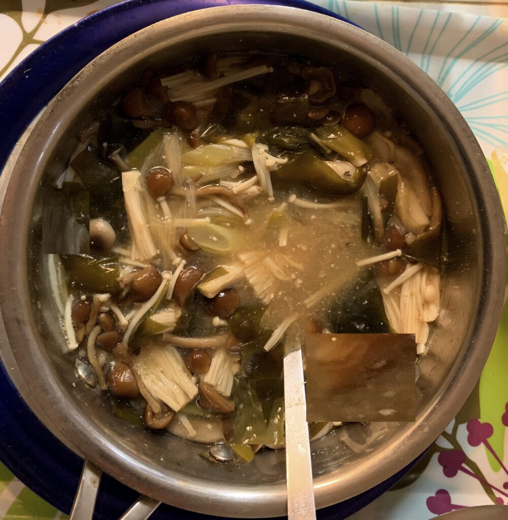 ときに、国産の わかめ、国産の ねぎ、国産の ぶなしめじ、国産の なめこ そして 国産の 榎茸 エノキタケ の味噌汁です。 ちな みに、去る 11年前の3月22日(日)の「わかめ」のブログ の中段に、