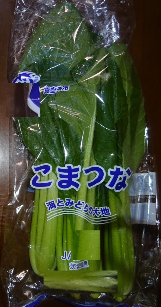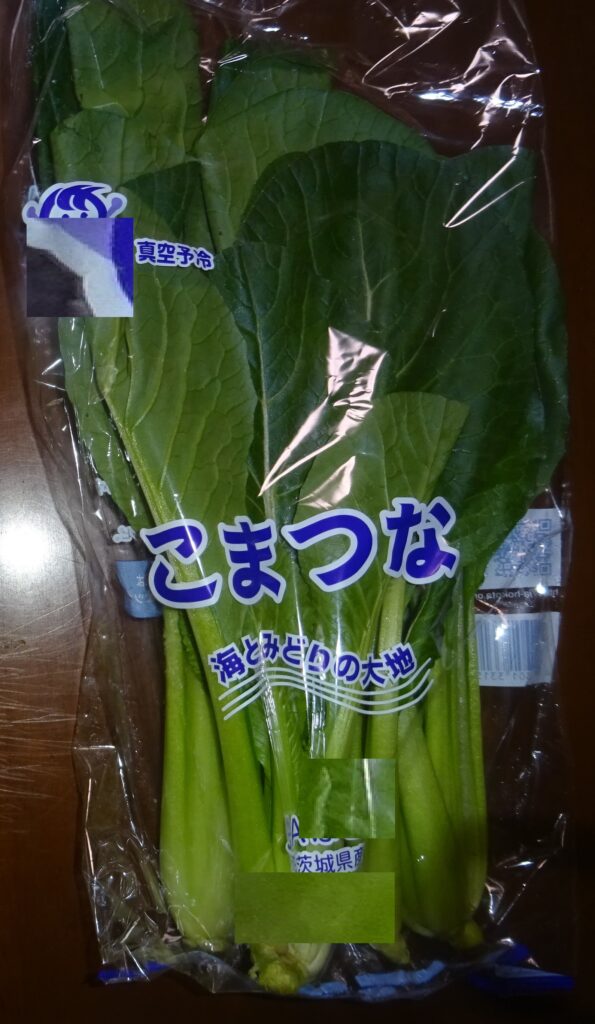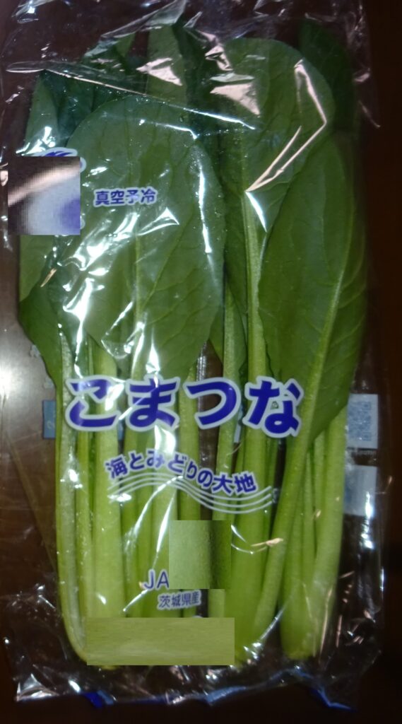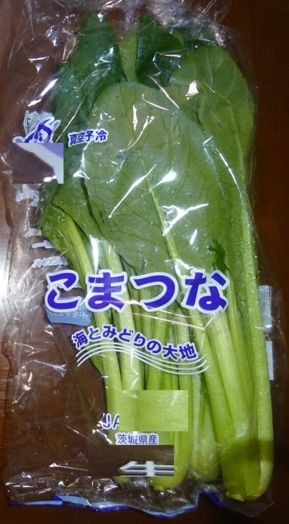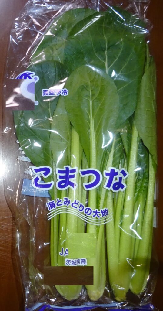なお、下の画像の小松菜が 真空予冷されていることを伝えました。すなわち、近年 真空予冷が、主流で行われています。つまり、真空にして 野菜の水分を蒸発させ その気化熱を野菜から 奪うことにより、野菜を冷やすのであります。要するに、野菜から 奪う水分は、全体の2%であるとされております。但し、余分な水分であればいいですが、野菜の水分を奪い 乾燥させていいものであるか との話になりました。序で乍ら、家政婦さんによりますと、小松菜の調理を するのに 時間が掛かる との旨でありました。因みに、その家政婦さんによりますと、追加で 30分 煮ても 柔らかくならないとのことでありました。但し、これは、夏季の小松菜の話であります。なお、去る 一昨年の12月5日(木)の「家政婦さんの入院・続報152」のブログの中段やや下に、