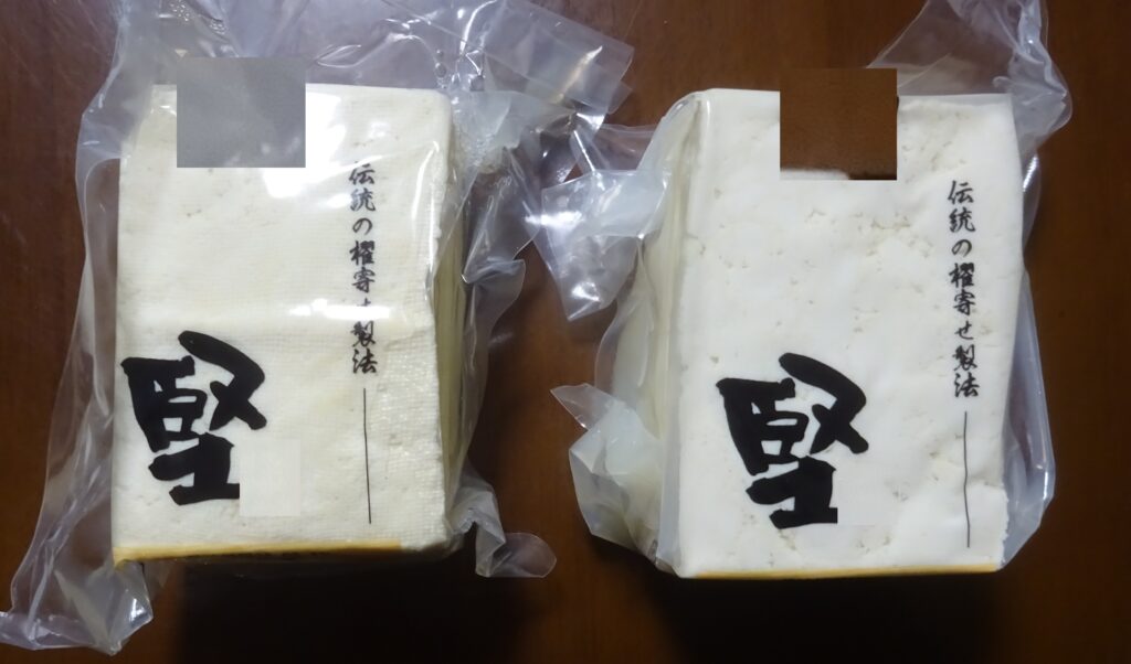 【(前略)奈良時代、 遣唐使が中国から豆腐の作り方 を日本に持ち帰ったということが豆腐伝来説として有力とされています。その伝来した際、豆腐と納豆の名称が 逆になって伝わったとのことです。考えてみますと、納豆の製法である〖豆を(納豆菌で) 腐らす〗のは 正しく納豆であり、豆腐の製法である〖豆を(型に) 納める〗のは 正しく豆腐でありますね。(後略)】と記させて頂きました。(後略)』と記させて頂きました。そして、過日は 絹漉し豆腐を購入してきました。それから、今回は、上記の木綿豆腐を買いました。すなわち、絹漉し豆腐 と 木綿豆腐を 交互に購入しています。(後略)」と記させて頂きました。
