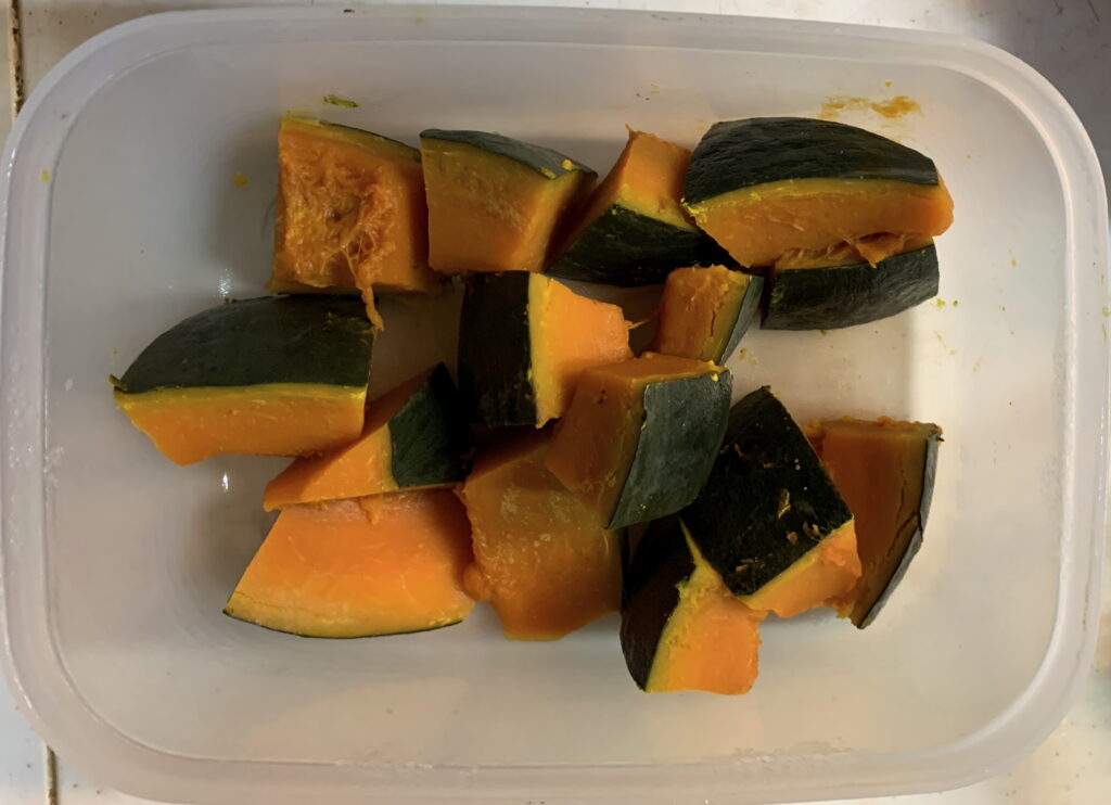 しかも、国産の 南瓜の煮物です。 因みに、南瓜のことは、去る 11年前の4月16日(木)の「酢漬け」のブログ の中段やや上に記させて頂きました。なお、この 南瓜の煮物は 父親の好物でありましたので、お供えを させて頂きました。