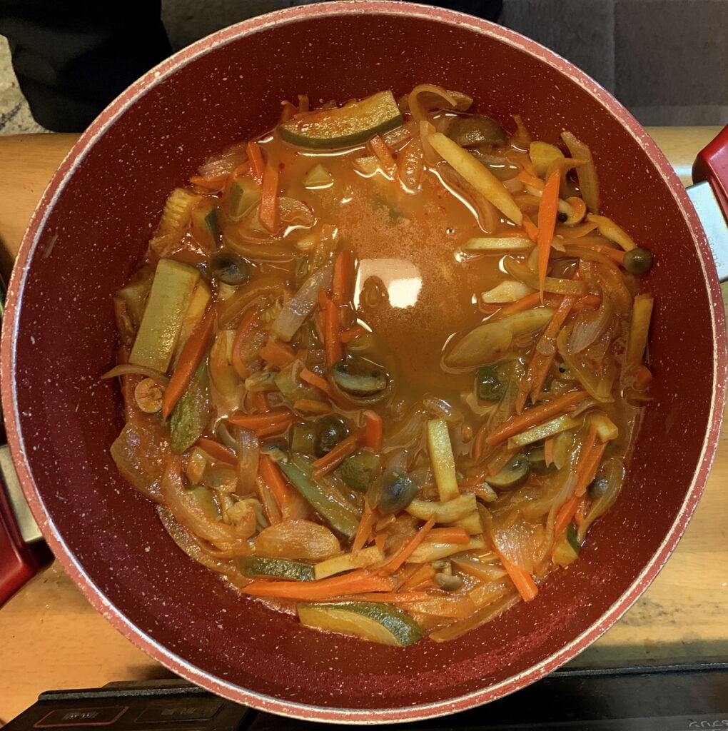 そのうえ、その家政婦によりますと、自分の家では ズッキーニを入れるとのことでありました。因みに、ズッキーニは ウリ科カボチャ属の一年生の果菜であります。なお、外見は 胡瓜に似ていますが、南瓜のなかまなのでありますね。序で乍ら、その家政婦によりますと、ズッキーニは 柔らかいとのことでありました。