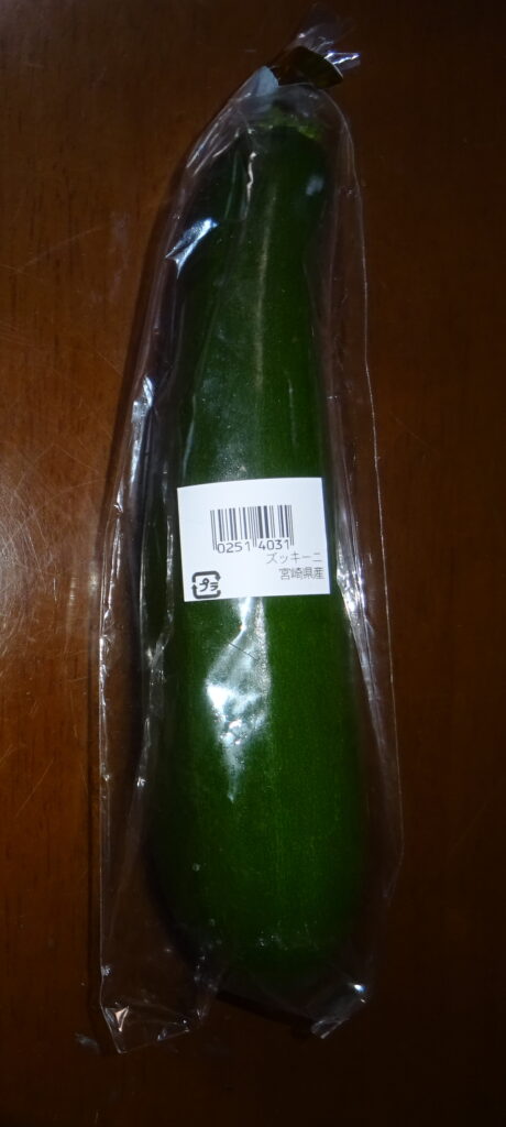 国産の ズッキー二(冷蔵庫に 立てて 保存すると いいとのことであります)