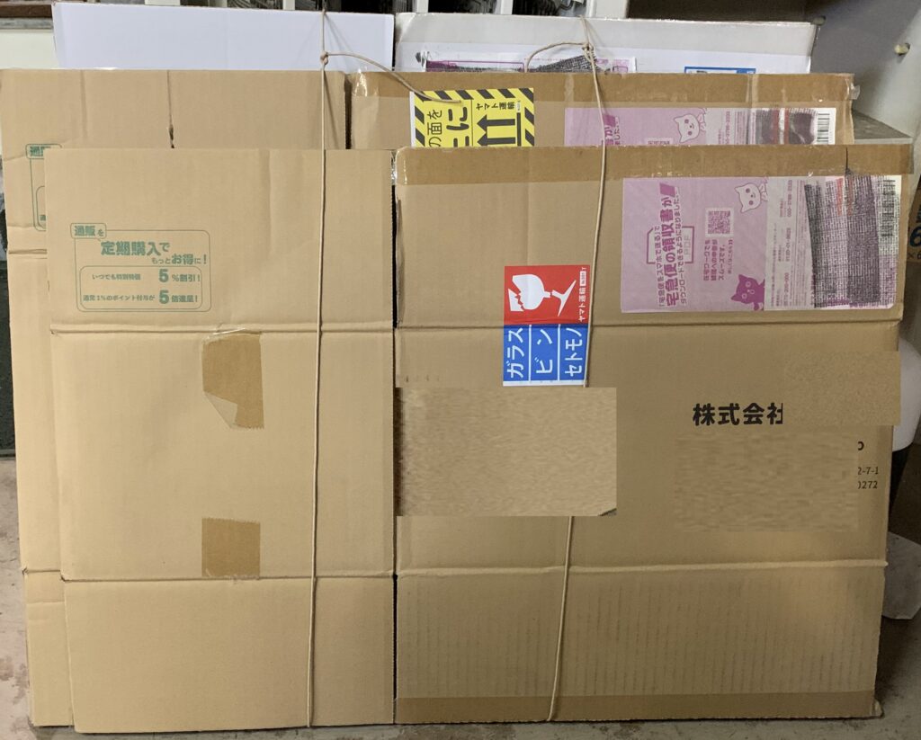 紙紐かみひもを用いて くくった ダンボール