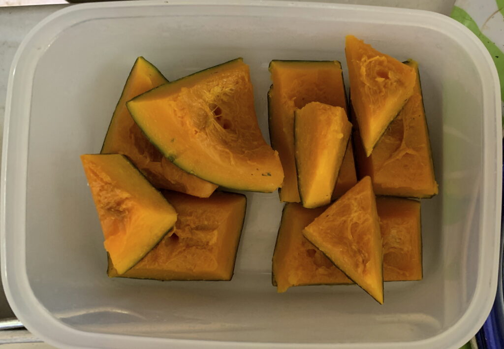 しかも、国産の 南瓜の煮物です。 因みに、南瓜のことは、去る 11年前の4月16日(木)の「酢漬け」のブログ の中段やや上に記させて頂きました。なお、この 南瓜の煮物は 父親の好物でありましたので、お供えを させて頂きました。