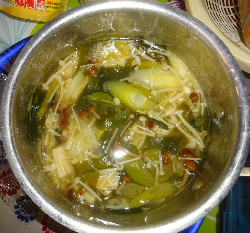 ときに、国産の わかめ、国産の 葱、国産の ぶなしめじ、国産の なめこ そして 国産の 榎茸 の味噌汁です。 因 みに、去る 11年前の3月22日(日)の「わかめ」のブログ の中段に、