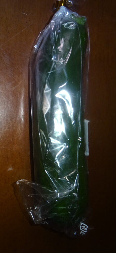国産の ズッキー二(冷蔵庫に 立てて 保存すると いいとのことであります)