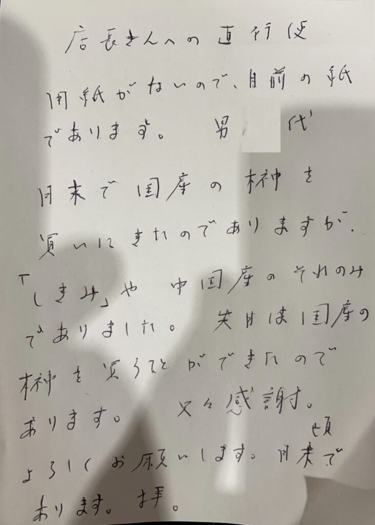 自前の用紙を使った 「店長への直行便」