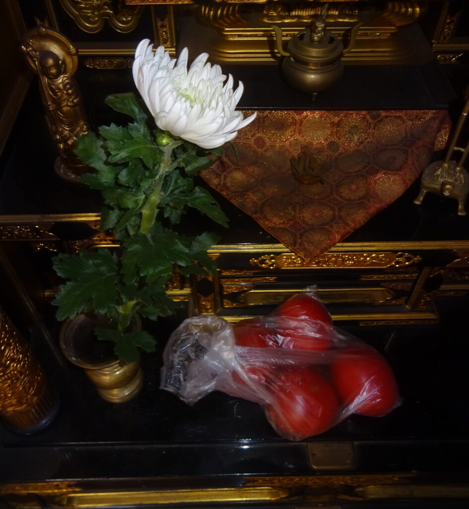 御仏壇に そなえた 父親の好物だった 国産の ミニ トマト