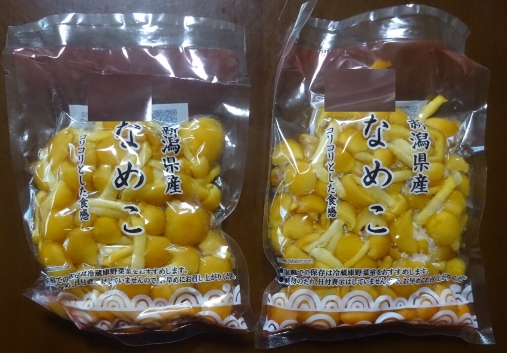 国産の なめこ(家政婦さんによりますと、なまの株とり なめこは ふくらむ とのことでありました)