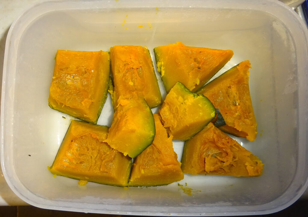 しかも、国産の 南瓜の煮物です。 因みに、南瓜のことは、去る 11年前の4月16日(木)の「酢漬け」のブログ の中段やや上に記させて頂きました。なお、この 南瓜の煮物は 父親の好物でありましたので、お供えを させて頂きました。