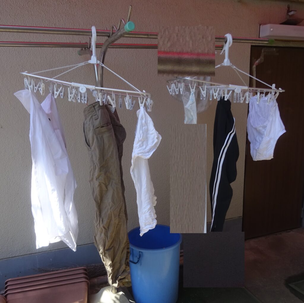 「(前略)一昨々日さきおととい すなわち 9月23日(金)の『資源回収・続報16(母親の血圧)』のブログの中段に、『家族の洗濯物のことも致しました。』と記させて頂きました。ちなみに、毎日 洗濯致しております。なお、昨日は、母親の洗濯物も致しました。(後略)」と記させて頂きました。毎日 家族の洗濯物を洗濯して してきました。ついながら、雨が降りましたので、洗濯物を屋内で 陰乾かげぼしすることになりました。但し、去る 7年前の12月6日(木)の「ガス衣類乾燥機・続報・5」のブログに記させて頂きましたように、ガス衣類乾燥機を導入しました。そのため平干ひらぼし そして しの表示のある衣類を除いて ガス衣類乾燥機を用いることが出来るようになりましたので、誠に有り難いことに す量が 少なくなりました。しかしながら、ガス衣類乾燥機は、衣類に ダメージを与えることが分かりました。すなわち、衣類に 穴がいてしまうのです。 ちな みに、ガス衣類乾燥機の温風 そして 回転させるときの 機械的刺激は 強いのですね。