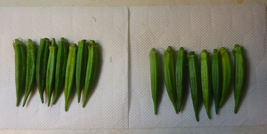 それで、オクラの保存方法を調べました。そして、キッチン ペーパーでつつんで 保存袋に入れて 冷蔵室(チルド室)ではなくて 野菜室に 立てて 保存することにしました。ちな みに、今度の 国産の オクラは、¥198円(税抜ぜいぬき)であります。